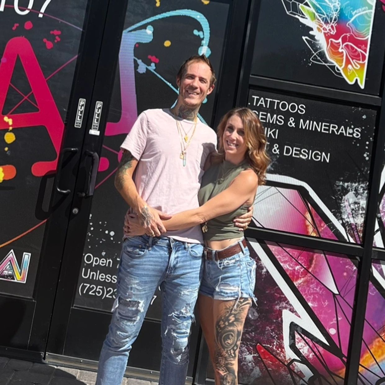 Affinity Ink, Las Vegas’s Premier Custom Tattoo and Crystal Studio. Envisioned, then Manifested by interdisciplinary Tattooer/Artist Chad Lambert and Gem Enthusiast Mallory McFee. We are dedicated to the art and culture of tattooing and are very passionate about Tattoos, Art, Crystals and Minerals. Our unique qualified team has decades of combined experience in the body modification industry as well as other areas of art and business, we offer a positive attitude, approach, attention to detail and an overall commitment to our clients tattoos, procedures, wellbeing and overall experience.